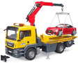 - Includes a MAN TGS towing truck, light & sound module, and a red roadster sports car