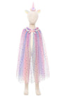 Sparkle and shimmer in our Rainbow Unicorn Cape & Headband set. This pastel-hued cape, embellished with sparkly sequins and silvery trim details, is made complete with a sparkly iridescent unicorn headband with floral accents.