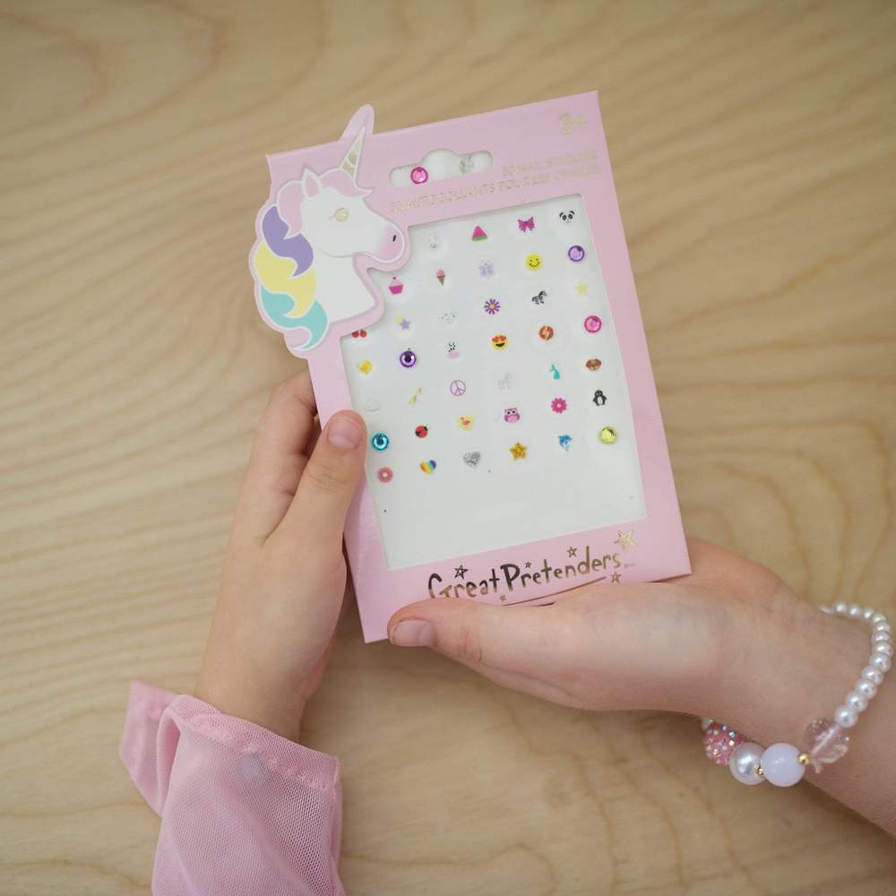 Our NEW nail stickers are made with 1 sheet of 50 stickers designed in Canada just for kids! Add a touch of magic to your everyday wardrobe with our unicorn themed nail art. This set includes fun unicorns and friends!