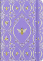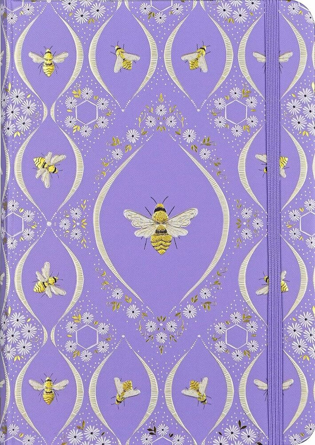 • A repeating pattern of artfully framed bees amid delicate white blossoms is featured on the covers of this charming small-format journal.