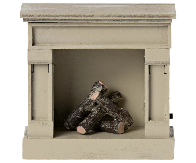 Use this wooden fireplace to warm your miniature home. It has an authentic look and a vintage finish. Remember to turn off when your friends go to bed. The product comes without a battery. You can add a coin cell battery (CR2032).