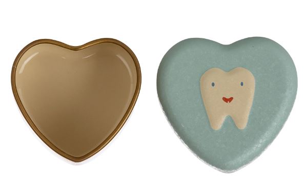 This metal heart is the perfect place to save small baby teeth to ensure childhood memories will last. The box has a lovely tooth embossment and special cracked surface on lid.
