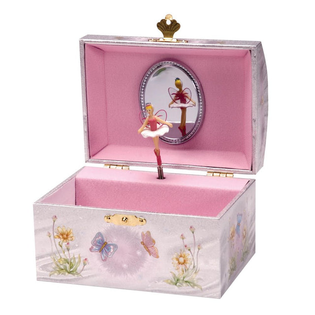 From Schylling, this shimmering jewelry box is the perfect place for your little angel to store all her jewelry. When opened, it reveals a twirling fairy and plays the classic melody "Swan Lake".
