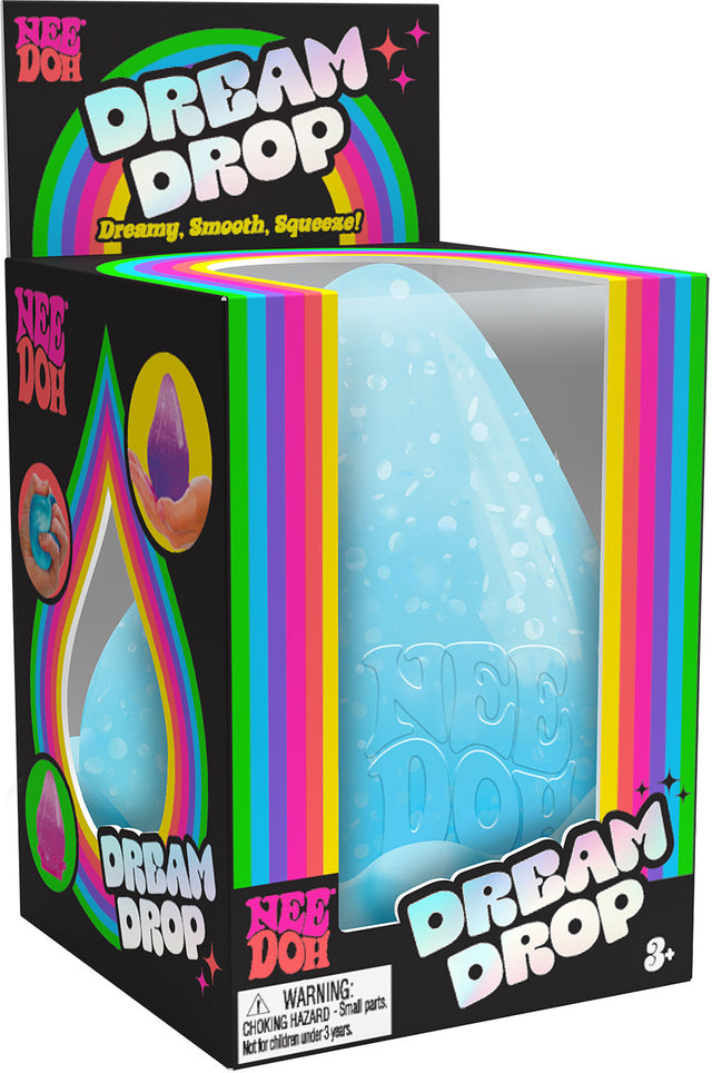 Melt into chill with the NeeDoh Dream Drop! Let its squish, unique sparkle filling, and groovy shape wash over you like a gentle rain. The dreamy smooth squeeze creates a sensory oasis wherever you go, beckoning you to ride the wave of relaxation. Ages 3+