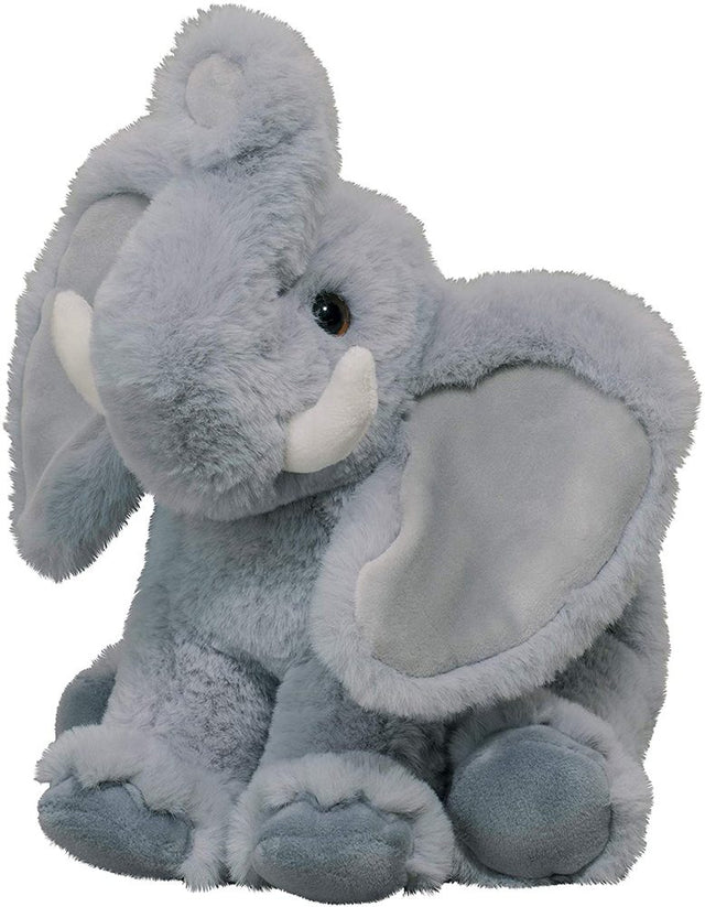 People have been talking about a rumble in the jungle and, as it turns out, it's been Everlie the plush Elephant Softie this whole time! She's a professional party animal who loves to turn up the music and dance! Everlie's large, floppy feet are accented with scalloped toe detail and have been weighted with beans for an extra floppy feel. Decadent gray plush materials and velvet lined ears make our playful pachyderm the ultimate in cuddly companions. She features soulful, brown eyes, two soft, white tusks, and a cheerfully upraised trunk that reveals her spirited personality. Invite Everlie the Elephant Softie stuffed animal to your next party and you'll both have a wild time!