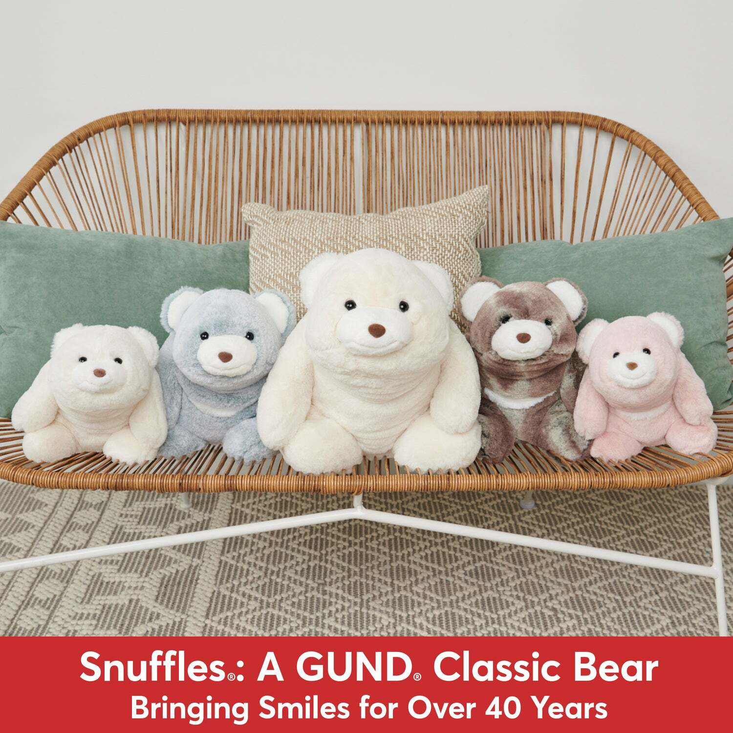 A classic for over 40 years, Snuffles is an all-time GUND favorite teddy bear and has been made in fun formats and sizes ranging from fluffy 5" keychains to classic huggable plush in sizes and colors for everyone. All share this iconic bear's adorable, timeless design, expression, and curved shape to provide a smile and snuggly comfort wherever you might need it. Snuffles is built to be passed down from generation to generation and features surface-washable construction for hassle-free cleaning that stays soft even after countless kisses, naptime cuddles, and playtime adventures.