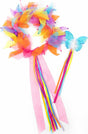 No fairy princess is complete without her halo and wand. This rainbow ribbon halo and butterfly wand set are made of flowing streamers and glittering gems are the perfect addition. The halo sits atop the head with a flexible plastic headband, and wand has a thick, durable handle. They coordinate beautifully with our adorable fairy dress ups.