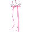 Being a princess can be a tough job so why make it harder for your little one with a plastic tiara? Crafted with rigid yet moldable wiring, this tiara can easily be reshaped to fit any little Princess' head. Part of our Ribbon Tiara collection of three, each tiara features a ribbon-wrapped foam based decorated with gems and rosettes. Ribbons delicately match and can be left to dangle, or tied into a bow . Silver beads glimmer in the light, leaving this tiara truly fit for an active Princess!