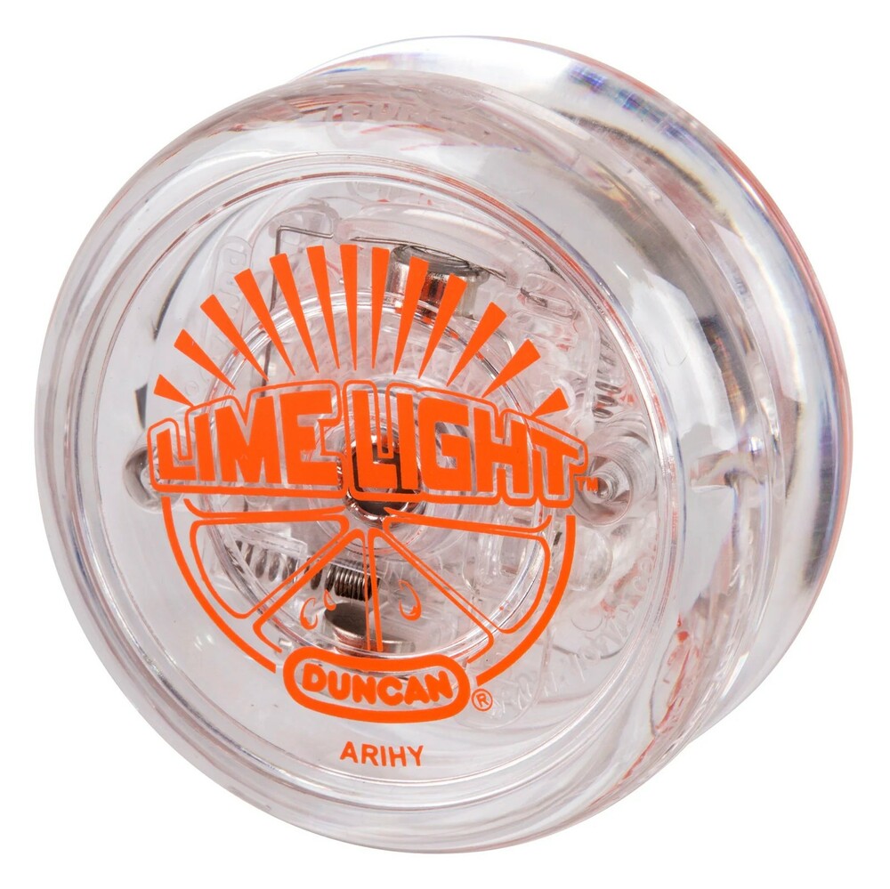 Creating a light show on a string is easy with Lime Light . Lime Light features a rim-weighted body made of durable polycarbonate plastic that encases special LED light technology that blinks, changes colors and patterns while it spins. Lime Light features a removable/replaceable wooden axle for looping tricks giving it that classic wooden yo-yo feeling in a modern plastic design.